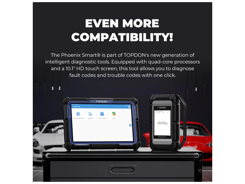 Phoenix Smart® je součástí nové generace inteligentních diagnostických nástrojů TOPDON. Tento nástroj je vybaven čtyřjádrovými procesory a 10,1palcovým HD dotykovým displejem a umožňuje vám diagnostikovat chybové kódy jediným kliknutím. Jeho 12600mAh baterie může pracovat celý den bez obav ze ztráty energie. Phoenix Smart také podporuje cloudové programování pro více než 13 značek automobilů a zahrnuje 2 roky bezplatných aktualizací softwaru. V kombinaci s MDCI Pro vám tento skener poskytuje bezprecedentní pokrytí, inteligentní diagnostiku a širokou škálu funkcí údržby.