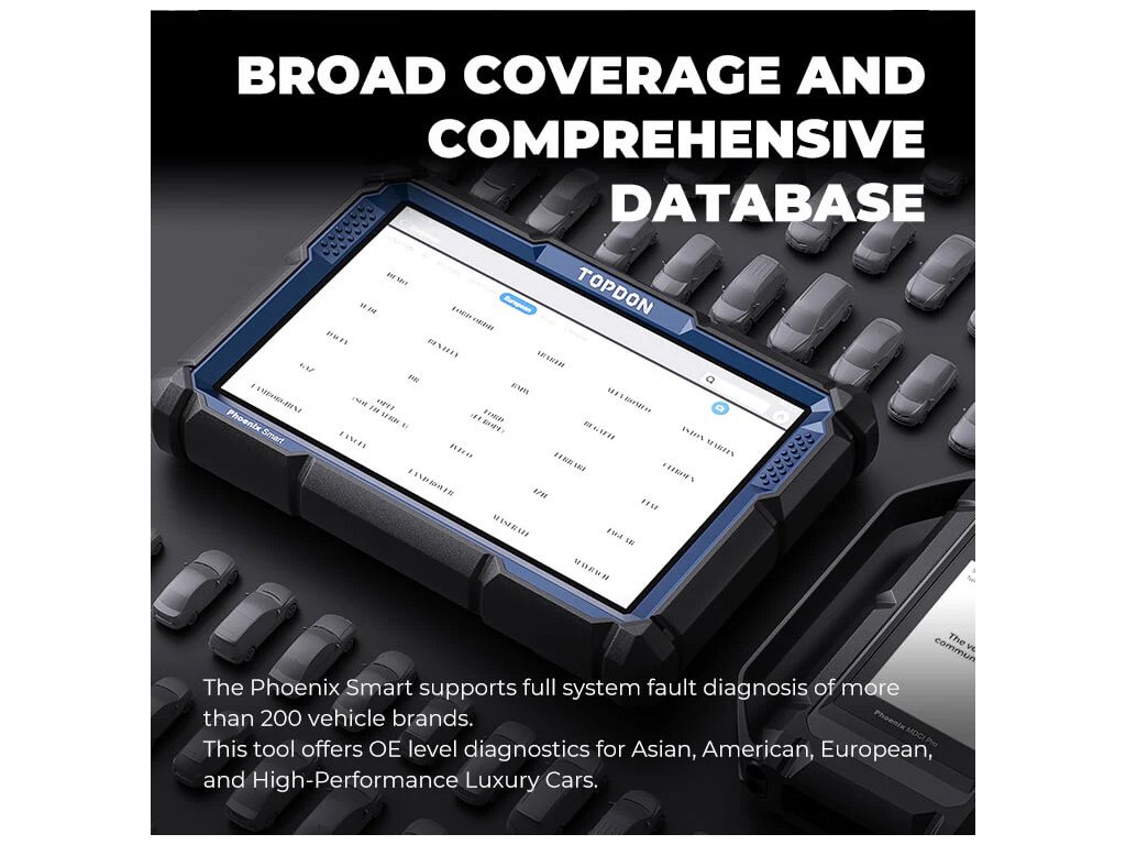 - Phoenix Smart podporuje úplnou diagnostiku systémových chyb více než 200 značek vozidel. Tento nástroj nabízí diagnostiku na úrovni OE pro nejběžnější asijské, americké a evropské modely a mnoho dalších modelů vozidel.