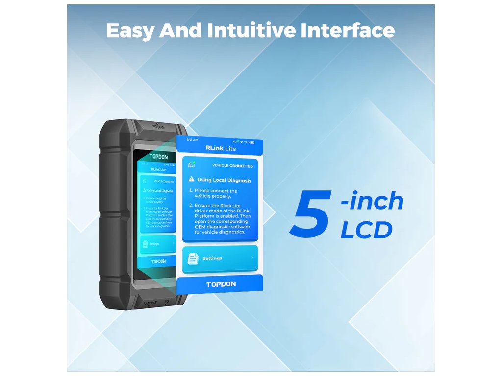 RLink Lite, produkt nezávisle vyvinutý společností TOPDON, je všestranný diagnostický nástroj, který uživatelům umožňuje dosáhnout diagnostiky na úrovni OE pro širokou škálu vozidel. Díky uživatelsky přívětivému 5palcovému dotykovému LCD displeji toto diagnostické zařízení funguje hladce. RLink Lite slouží jako OE softwarový VCI box a usnadňuje bezproblémovou diagnostiku, programování a kódování pro renomované značky automobilů, jako jsou Mercedes-Benz, BMW, VAG, Porsche a další.