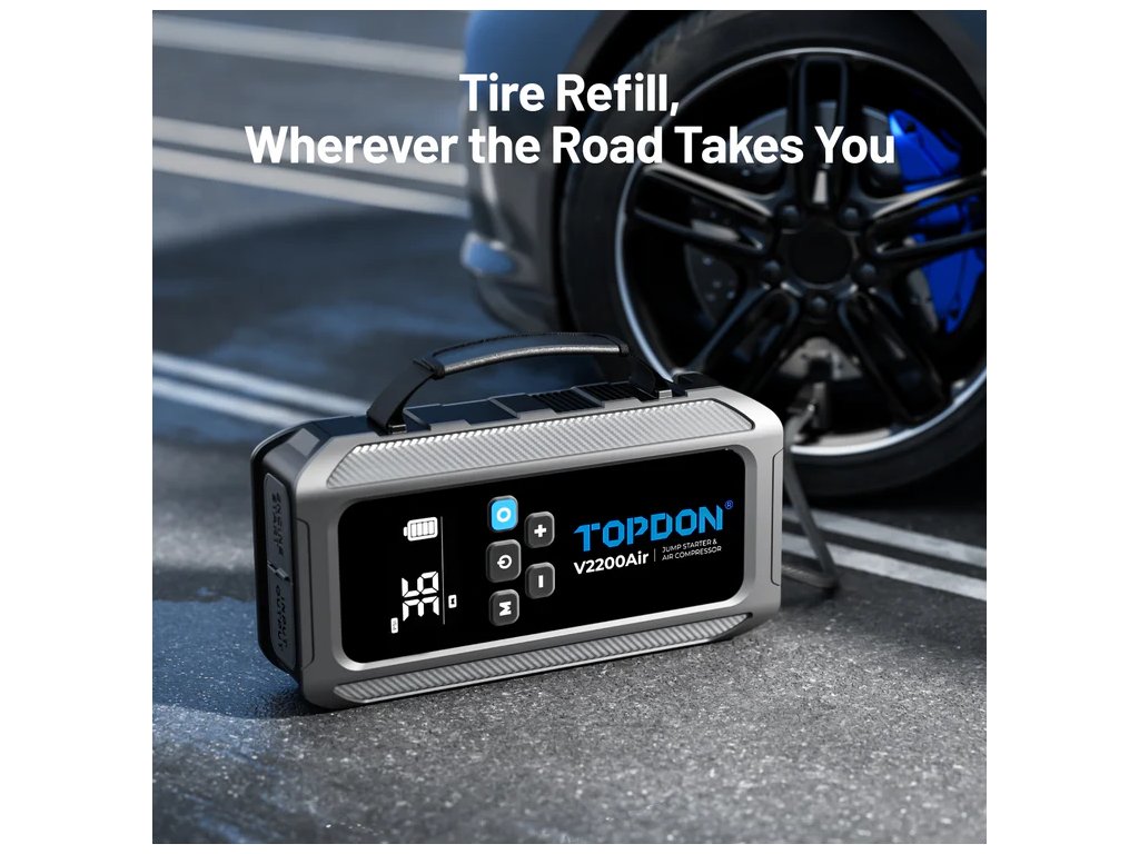 Představujeme V2200Air, dokonalé all-in-one řešení pro nouzové potřeby každého majitele auta. Toto všestranné zařízení vám umožní nastartovat auto, nafouknout pneumatiky, nabít zařízení a osvětlit okolí s lehkostí. S působivým špičkovým proudem 2200A dokáže nastartovat motory až do 8.0L benzín nebo 6.0L diesel za pouhé 2 sekundy. Integrovaná vzduchová pumpa nafoukne pneumatiky za méně než 3 minuty, což zajišťuje, že se rychle vrátíte na cestu. Buďte připraveni na jakoukoli situaci a jezděte s jistotou, že vás V2200Air nezklame.